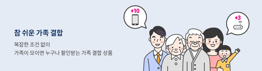 누구나 쉽게 결합하고 더 많이 할인받는 유무선 결합 상품입니다.