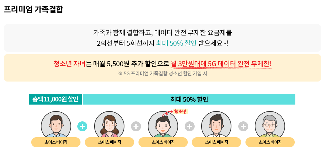 가족과 함께 하면 데이터 완전 무제한이 최대 반값이라고 합니다.